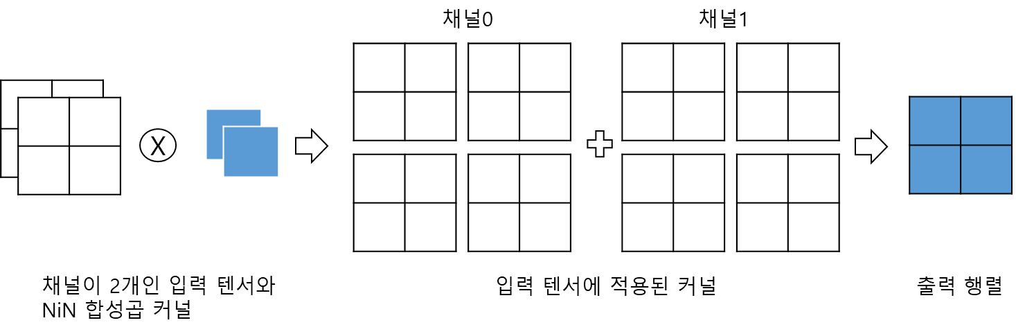 채널이 2개인 입력 텐서와 NiN 합성곱 채널